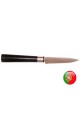 Couteau d'office lame en acier inoxydable Norme CE microdentée de 9 cm, manche en plastique surmoulé noir ovale, bague inox, idéal pour le travail des agrumes (ananas, orange,...), des tomates. Entretien possible au lave-vaisselle.